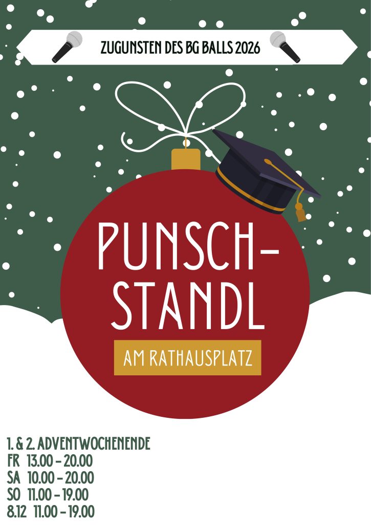 Allgemein Punschstand der 7. Klassen Veröffentlicht von ADM am 19. November 2025 Weitere Artikel → Wir, die 7.Klassen, laden Sie herzlich zu unserem Punschstand am Rathausplatz ein und freuen uns auf zahlreiches Kommen! Post Views: 72 ADM Weitere Artikel →